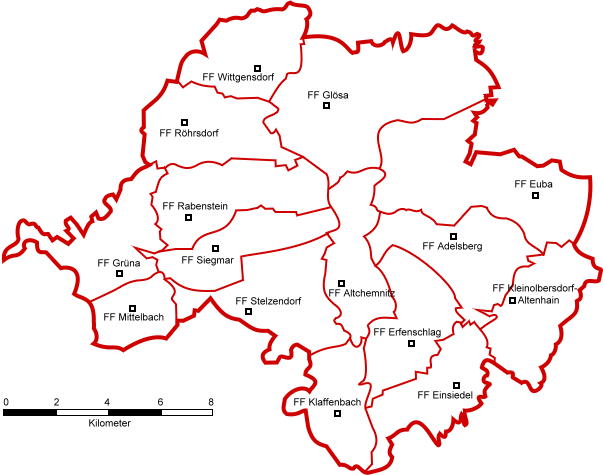 Die Gerätehäuser der 15 freiwilligen Feuerwehren der Stadt Chemnitz liegen, ähnlich wie die Feuerwachen der Berufsfeuerwehr an strategisch günstigen Standorten.